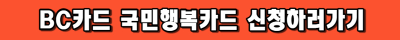 ※ BC카드 홈페이지 하단 국민행복카드 발급은행(카드사)에서 발급 희망하는 카드사 선택 후 사이트 내에서 검색 후 신청.